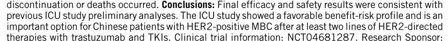 Huimin Lv, Min Yan, Tao Sun, et al. Anti-HER2 antibody inetetamab plus camrelizumab and utidelone for pretreated HER2-positive metastatic breast cancer: Final results from the phase 2 ICU trial. J Clin Oncol 41, 2023 (suppl 16; abstr 1042)