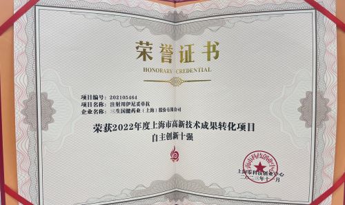 2023年12月18日,由上海市科委指導,上海市科技創(chuàng)業(yè)中心主辦的“2023上海高新技術(shù)成果轉(zhuǎn)化百佳表彰會”在中國金融信息中心舉行,并于表彰會上進行了2023上海市高新技術(shù)成果轉(zhuǎn)化項目自主創(chuàng)新十強頒獎儀式。三生國健自主研發(fā)的抗HER2單抗——注射用伊尼妥單抗正式榮膺上海市高新技術(shù)成果轉(zhuǎn)化項目“百佳”與“自主創(chuàng)新十強”兩項榮譽稱號。